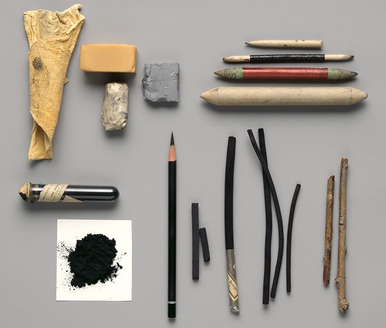 camussa de cotó, gomes d'esborrar, esfumins, branquetes de